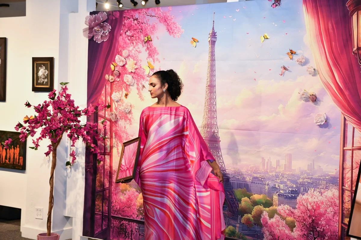 This spring/summer couture collection is themed "Spring in Paris". At this exclusive event, you will have the opportunity to purchase one-of-a-kind pieces, including dresses, blazers, unique silk scarves adorned with artist paintings, original artworks by various artists from all around the world and many other remarkable items.